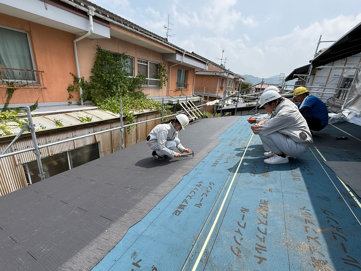 最後は屋根の下地作業です。雨・風を防ぎ快適に暮らせるこれも大事な作業です。